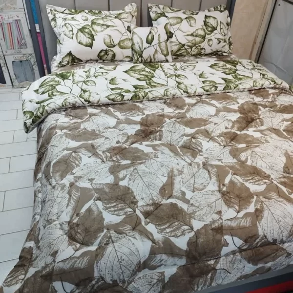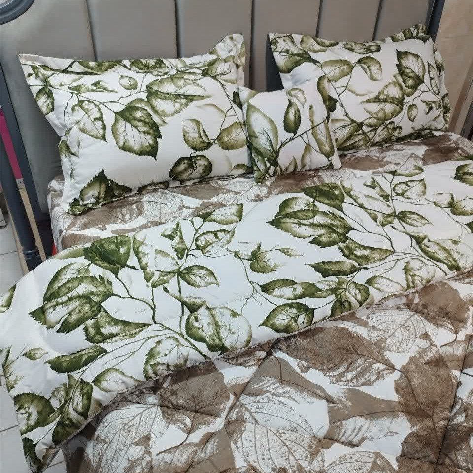 دونفره ۵ تکه شامل : لحاف دوخت دار، دوعددروبالشی یااز طرح روی لحاف یا از طرح پشت لحاف ،دوعدد روکوسنی هم رنگ روبالشی